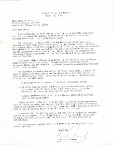 5.) A letter written August 18, 1986 by Senator Edward Kennedy regarding the dedication and the Senator's support in having Congress appropriate funds for the restoration of Great Point light.