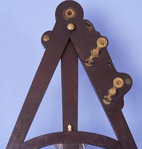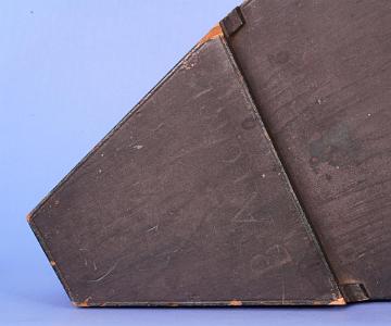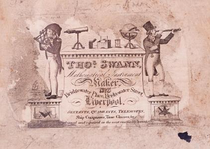 InformationRare 20 inch Mahogany, brass and ivory quadrant unsigned English, circa 1790. The instrument has an all wood frame and sliding mahogany radius arm with a stepped brass fitting at the end with an ivory Vernier scale. The bottom arc of the instrument has an inlaid ivory engraved scale with marking 0-90 degrees. Near the center of the instrument is a curved stretcher with a blank ivory maker's label below the turned bone pencil holder. The instrument is complete with index mirrors, pair of color filters, 2 peep sights and three brass feet. The instrument retains the original pie shaped step up box with the owner's name 'B ARCHER' stenciled on the top of the raised section of the lid. The inside of the lid bears the original makers label which is engraved 'Thos. Swann Mathematical Instrument... Maker No. 3 Liverpool'. (I-898)