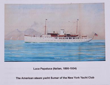 InformationLarge and rare 8-1/2 inch Chelsea "Yacht Wheel" clock purchased to be used on the yacht Sumar belonging to David C, Whitney of Detroit. The Chelsea Clock Records Register lists this clock having been sold to Tiffany and Co. on August 31, 1926. The clock is signed below the "12" on the dial "Tiffany & Co." and it is also signed Chelsea Clock Company Boston below the Slow-Fast adjustment. This Chelsea "Mariner" clock has a ship strike, with silvered face, Arabic numerals, slow/fast adjustment, double barrel key wind for the movement and strike, hinged face with a bronzed ten-spoke "ship's wheel" fitted to the casement, with supporting pedestal on a mahogany base. The number #172852 is stamper on the round movement plate and on the bottom of the wood base. (CL-580) Condition: The clock is in excellent condition. It has bee polished and lacquered in the past few years and this finish is excellent. The time and strike movement is working accurtately. There are two holes lower in the back of the base and two others on the bottom of the base that were used to screw fasten the clock into the interior of the Yacht "Sumar". Height 25, Width 20, Depth 8 1/2, Inches Note 1: The yacht Sumar was commissioned by David C. Whitney in 1926, and named after his wife, Susan Marshall Whitney. She was designed by Henry J. Gielow and built at Todd Shipyard in Brooklyn, NY. In 1927 her captain was B. Madsen and in May she was in transit from Manila to Colombo Sri Lanka via Singapore. By April 1931 the Sumar had logged 85,000 nautical miles of cruising, including a circumnavigation of the planet. She ranged from the east and west coasts of the Americas, the Mediterranean and Black Seas, the British Isles, Scandinavia, and the Caribbean. The first part of her route took her to Port of Spain, Rio, Montevideo, then to Hammerfest Norway. Her captain in 1930 was Barney. In 1931 she sailed from the Tebo yacht basin in Brooklyn to her homeport of Detroit and Lake St. Claire via the St. Lawrence Seaway. Sumar was sold to the British Navy in 1942 and became the H.M.S. Sumar, and was used in the examination service until 1944, and then sold in 1946. Her pennant number was FY1003. Note 2: Accompanying the clock is a Silver Bromide period which measures 6 ½” x 8 ½” photograph of the Sumar with a small newspaper cut out about the yacht. There is a three-page story that was copied from a book which gives a lot of information of the Yacht and provides two photos of the boat and three photos of her interior. There is also a write up about the clock and the story of the yacht and its travels on her 85,000 nautical mile circumnavigation of the globe. Printed ion color on one of the pages is a color reproduction of a watercolor portrait of the yacht painted by the Italian marine artist Luca Papaluca. Note 3: Included is a two-page list titled “Todd Shipyards Corporation, Brooklyn NY” which lists information about the eighty vessels built at the yard between 1890 and 1960. The Sumar was the 37th one delivered on September 26, 1926.