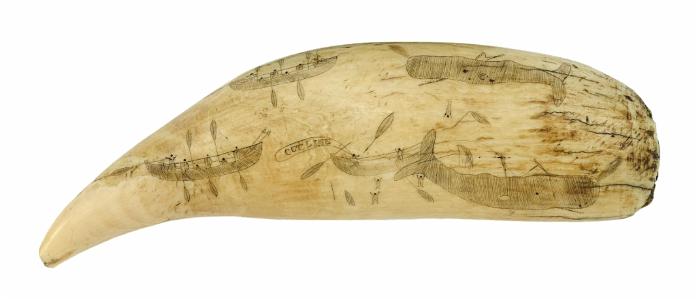 Exhibited at the Cahoon Museum Scrimshaw Exhibition titled “Scrimshaw the Whaler’s Art” June 29 - October 30, 2022.