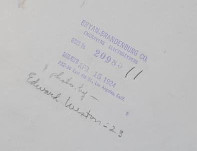 InformationVintage Silver print with a portrait of Karl Struss by Edward Weston. Weston's credit and date in pencil in an unknown hand and a Bryan-Brandenburg Co. stamp with a date (1924) on verso. 1923