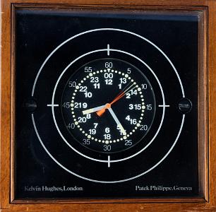 InformationKelvin Hughes is a venerated maker of marine chronometers and ship navigational instruments based in London for over 250 years. During the early 1970s Patek Philippe and Kelvin Hughes embarked on a brief partnership making marine chronometers that were equally suited for a client’s yacht and office.Kelvin Hughes is a venerated maker of marine chronometers and ship navigational instruments based in London for over 250 years. During the early 1970s Patek Philippe and Kelvin Hughes embarked on a brief partnership making marine chronometers that were equally suited for a client’s yacht and office. (CL0643) The aesthetic of this timepiece is quite unique for Patek Philippe’s historic design vocabulary. A bold black dial with rectangular luminescent hands made the dial easy to read, and a bold presence on a desk. The aesthetic of this timepiece is quite unique for Patek Philippe’s historic design vocabulary. A bold black dial with rectangular luminescent hands made the dial easy to read, and a bold presence on a desk. Caliber: Naviquartz III HF Movement number: 4.193968 Size: 184 x 182 x 96 mm Signed: dial signed by maker and retailer, movement signed by maker Box: a fitted wooden box signed Kelvin Hughes, London Papers: no C