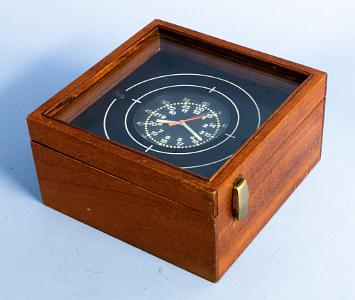 Patek Phillipe - Kelvin and Hughes Boxed Naviquartz III with Movement #4.193968 Dial: matte black Caliber: Naviquartz III HF Movement number: 4.193968 Case: painted wood, aluminum Size: 184 x 182 x 96 mm Signed: dial signed by maker and retailer, movement signed by maker Box: a fitted wooden box signed Kelvin Hughes, London Papers: no Description Dial: matte black Caliber: Naviquartz III HF Movement number: 4.193968 Case: painted wood, aluminum Size: 184 x 182 x 96 mm Signed: dial signed by maker and retailer, movement signed by maker Box: a fitted wooden box signed Kelvin Hughes, London Papers: no Patek Phillipe Naviquartz III HF Model4.193968 with Wood Box