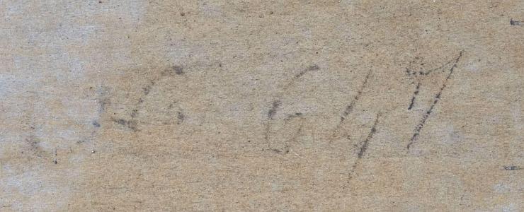 Condition of Painting: Painting is in excellent condition with only a few minor specks of in-paint. There is a long horizontal very fine in-painted line that runs across most of the middle of the painting.