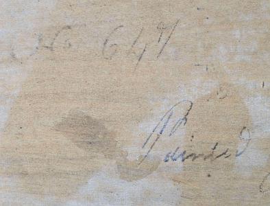 Note: Salmon kept a journal where he listed most of his paintings. The listings would usually list the painting number and these numbers ran chronologically from low to high in the journal. In the listing he usually would mention the painting's size, title, number of days it took to paint. If he sold the painting, he would sometimes include the sold price. When Salmon completed a painting, he typically, but not always, wrote the journal number on the back of the canvas or wood panel. Having the painting with the catalogue number enables one to refer to the journal to obtain additional information about the painting. A copy of the original journal is in the collection of the Boston Public Library. A second reference is the book “Robert Salmon Painter of Ship and Shore” by John Wilmerding which has an Appendix A which begins on page 89 and ends on page 98. The paintings in the Wilmerding book and in Salmon's original journal begin with No. 1 and end on No. 999. The dates in the journal begin at 1807 and end in July 1840. Not all Salmon paintings were listed in his journal as Salmon’s first works were painted in the year 1800; seven years before the journal came into use.