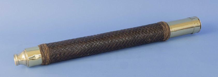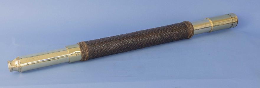 Condition: The telescope is in fine working order and has been recently polished and lacquered. The front and rear dark slides are lacking. The leather rap and turks heads are is excellent condition.
