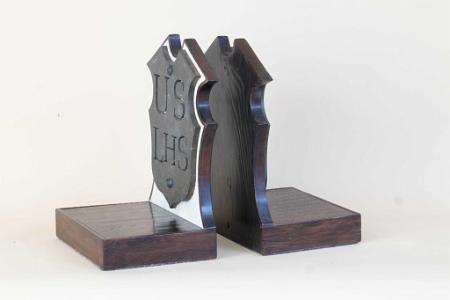 Pair of Light House Service Bronze Shield Shaped Plaques with the Pierced Letters Stating USLHS circa 1910.