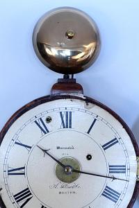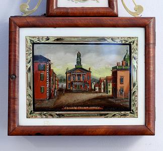 InformationEXTREMELY RARE AND IMPORTANT TIME PIECE WITH ALARM, signed A. Willard Jr., Boston, serial number 1154, circa 1830. This clock is in outstanding condition and does not have any replacements, repairs or omissions. Each piece of the case is stamped 1154 to correspond to the number on the dial. The glasses are original and the bottom glass depicts the Salem, Ma., Courthouse (slight paint loss). (CL0007)