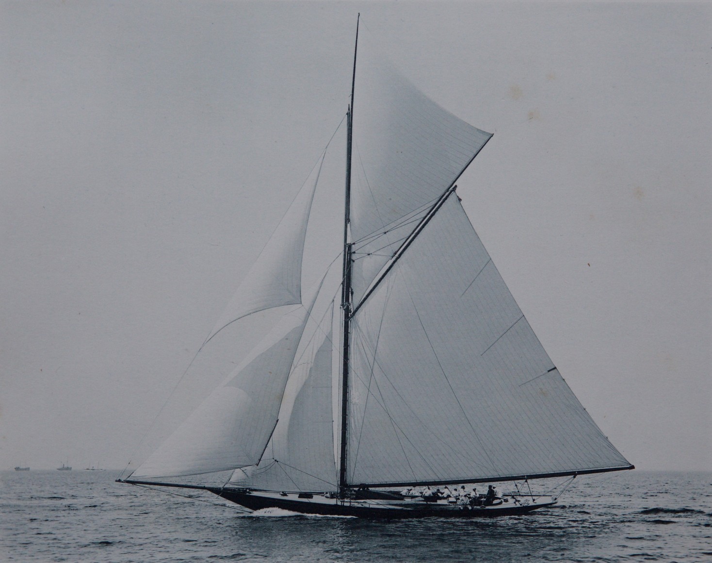 Note 1: The Yacht "Harpoon" belonged to the 46 footer class which began in 1891. The Harppon was designed by Edward Burgess and built by A.J. Frisbee of Salem in 1891. She was originally named "Beatrix" and was sold to the Adams brothers of Boston. They refitted her for the racing season of 1892. The changes included a new sail-plan and a weighted centerboard designed by Stewart & Binney. The success of the alterations was proven by the fact that the "Harpoon" beat the previous winner "Gloriana" in five straight races , by a margin of nearly 5 minutes in each race. Harpoon also won the 1892 Goelet Cup for sloops, defeating both "Wasp" and "Gloriana."