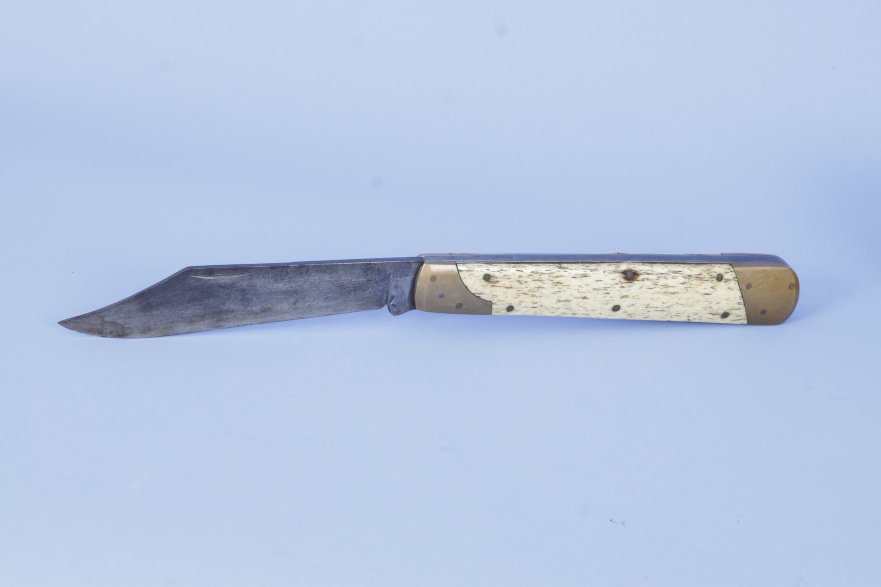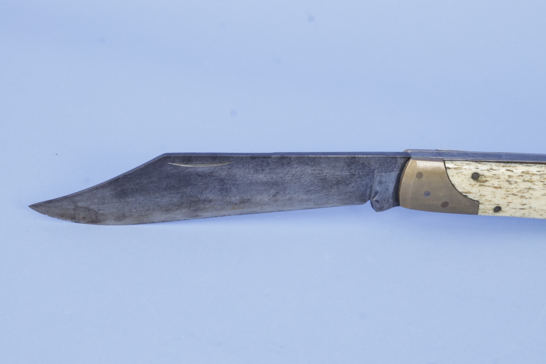 Large Whale Bone Grip Folding Sailors Knife, American Last Quarter 19th Century