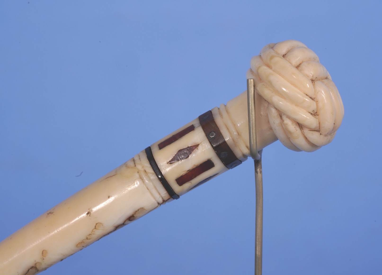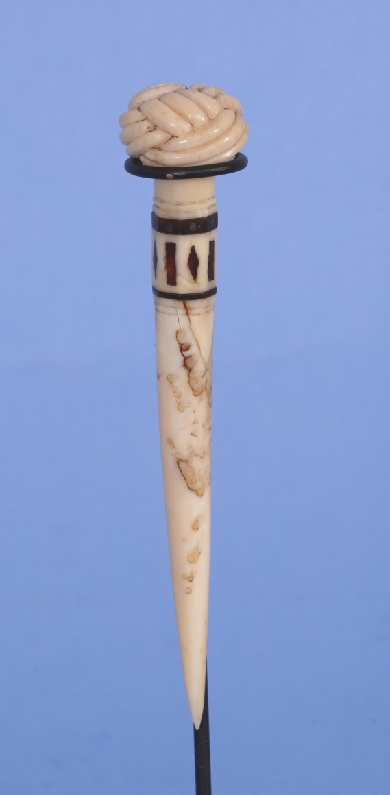 WHALE IVORY BODKIN WITH MONKEY FIST TOP American, Mid-19th Century