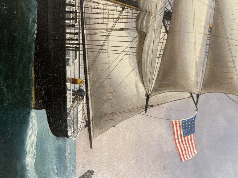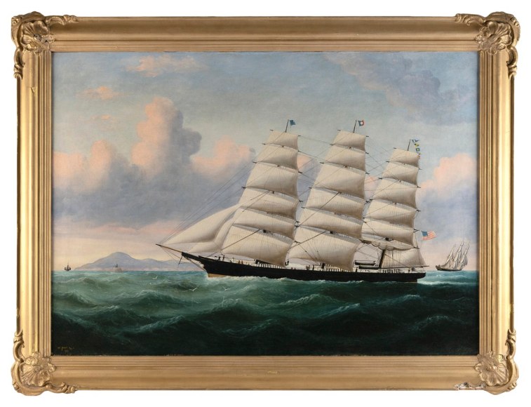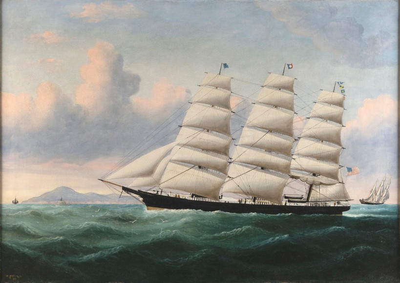 Oil on canvas paining of the American Clipper Ship "Herald of the Morning" signed and dated 'W. Yorke L'Pool / 1870'.