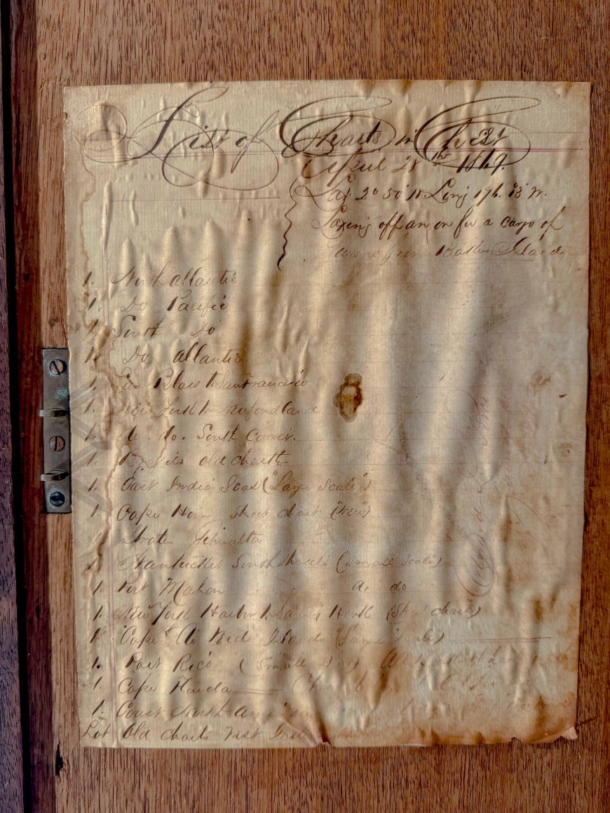"E.P. Percival Barnstable Mass" painted on front. Label "List of Charts in Chest April 28 1819" affixed to the interior of the lid. (I 1005)