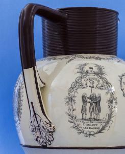 Monumental Liverpool Jug Celebrating Ireland with American Motifs circa 1800