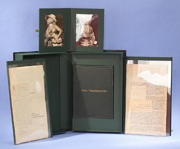 Provenance: From 1851, this ship's figurehead was in the possession of John C. Bailey. In the 1940s it appeared for sale in an antique store in Worcester, England. It was bought at this time by Mr. Vivian Collett and remained in the Collett family until recently when a grandson or daughter of Vivian Collett sold it. When it was purchased by Vivian Collett, it drew much attention and an article was written by Averil Mackenzie-Grieve titled 'The Last of the Brazilian Slavers, 1851' which appeared in the Mariners Mirror, Vol. 31, 1945. The original hand-typed manuscript of this article accompanies the figurehead and is based on Captain John C. Bailey's book 'H.M.S. Sharpshooter.' At the time of the article the figurehead was professionally photographed and there remains 2 original black and white photographs (6 1/2 x 4 7/8) showing two views of the carving. One can see clearly from the photographs that the condition of the carving has remained unchanged over the last 70 years. Accompanying the figurehead is an elegant three-quarter leather archival clam-shell box. The interior of the box has three stepped tiers. The top tier contains two folios, each one containing one of the two original manuscripts for the article the last of The Brazialian Slavers.' Below the folios is a fitted compartment which houses the original sign copy of the book 'Sharp Shooter.' The bottom level contains a foldout with clear plastic windows housing the original photographs that were taken for the 1945 Mariner's Mirror article discussing the figurehead.