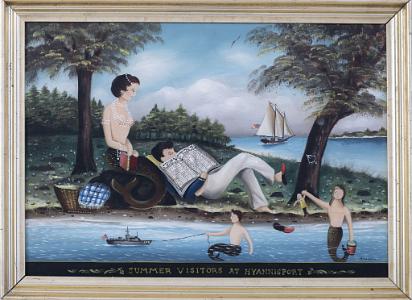 Exibition 2: Cotuit: Massachusetts, Cahoon Museum of American Art, Familiar Faces and Places in the Art of Ralph Cahoon". March 15,- December 23, 2023. The painting "Summer Visitors to Hyannis Port" was the lead painting in this exhibit and was used as the primary image for the show annoucements and advertising.
