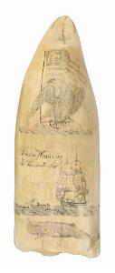 Reference: In his appraisal of this tooth, Stuart M. Frank "confidently attributes" it to Caleb T. Albro of Jamestown and Portsmouth, Rhode Island, who sailed aboard the John Coggeshall of Newport from 1834 to 1847. According to Scrimshaw and Provenance: A Third Dictionary of Scrimshaw Artists written by Frank (Mystic, Ct.: Stuart M. Frank and Mystic Seaport Museum, 2013), Albro was born probably in 1816 and served on one whaling voyage.