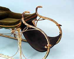 InformationExtremely Fine and Important Child's Sled, with eight carved and gilted eagles. The sled is beautifully polychromed and retains most of its original paint. The sled pulls are ivory and possibly whale's tooth. The sled has a new upholstery green velvet mohair seat. (CR5009)) Dimensions: Length 42 inches; Width 22 1/2 inches; Height 18 inches.