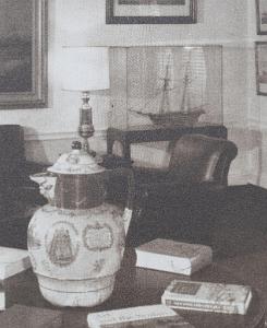 The model is pictured in the illustration titled "Lounge" facing page 130. The model is sitting on a table with its case in the right corner of the room.