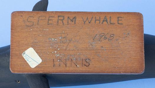 Note 1: Robert Innis is probably one of the only one-armed carver and ship model builders. The detail of his work is highly detailed, and he was well regarded as a fine craftsman. His work is in the collection of several museums including Mystic Seaport, Peabody Museum, Heritage Museum and gardens. His whale carvings rarely appear on the market. (FA1139)