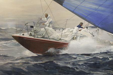 Painting of The America's Cup trials Yacht "American Eagle" by Frank H. Wagner, American 1964