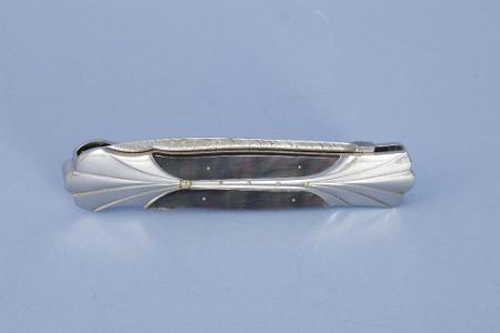 Black Lip Pearl Gripped Folding Knife signed KA Steigerwalt