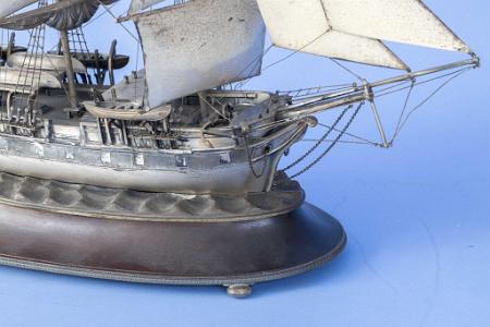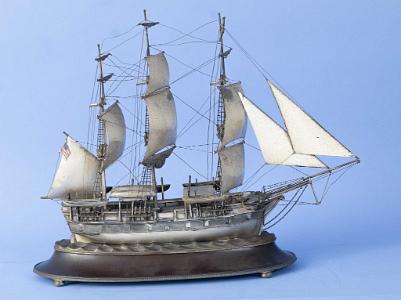 Rare Silver Rigged Model of the Whale Ship "Charles W. Morgan" by Pairpoint Manufacturing, New Bedford, MA, circa 1910
