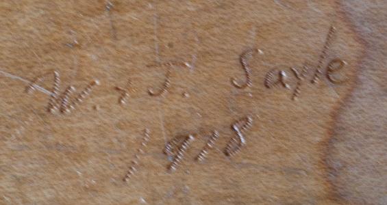 InformationVintage Nantucket Purse with engraved at the bottom of the maple base "W & J Sayle 1978". The basket has a fine grain walnut top with a carved sperm whale applied to the wood top. Set into the upper left corner of the inside of the maple base is a penny dated the year the basket was made (1978). The basket has oak rims on the top and basket base. The basket base has oak ribs and rattan weave. The swing oak handle is the most finely made with wonderful curves in as the tapers and attaches on both sides to the lower oak rim. The handle attaches to the basket with turned ivory knobs and washers with metal hardware. At the front of the basket is a wrapped leather top loop which fits into a second wrapped loop which is attached to the bottom rim. The lid locks by placing the small turned ivory fid on a woven safety cord through the loops. Mounted to the top and bottom on the back of the basket are a pair of leather cane wrapped loops which act like a pair of rear hinges. (FA1213) Condition: The basket is in excellent condition and has a mellow patina. Dimensions: Width of rim 8 1/2 Inches, Width of ivory side knobs 9 ½ Inches, Height to top of basket 6 ¾ Inches, Height from bottom to top of handle 11 1/2 Inches. About the makers: Bill and Judy Sayle’s work represents both past and present traditions found in Nantucket baskets of today. The Sayle family has been involved in the ivory carving and basket arts since 1948 when Charles Sayle Sr. first started carving ivory figures for the tops of Friendship Purses by Jose Formoso Reyes, the originator of the Nantucket basket purse. Beginning in 1973, Bill and Judy have been weaving baskets and carving ivory and whalebone in the traditional Nantucket style. All aspects of each of their finished products are their own: from crafting the molds and weaving with the highest quality of materials to carving their own basket embellishments as well as more specialized whale boards and larger stand-alone pieces. The Sayle name is highly recognized within the decorative arts community of Nantucket and they are widely considered one of the top producers, making each of their one of a kind items a true collector’s piece.