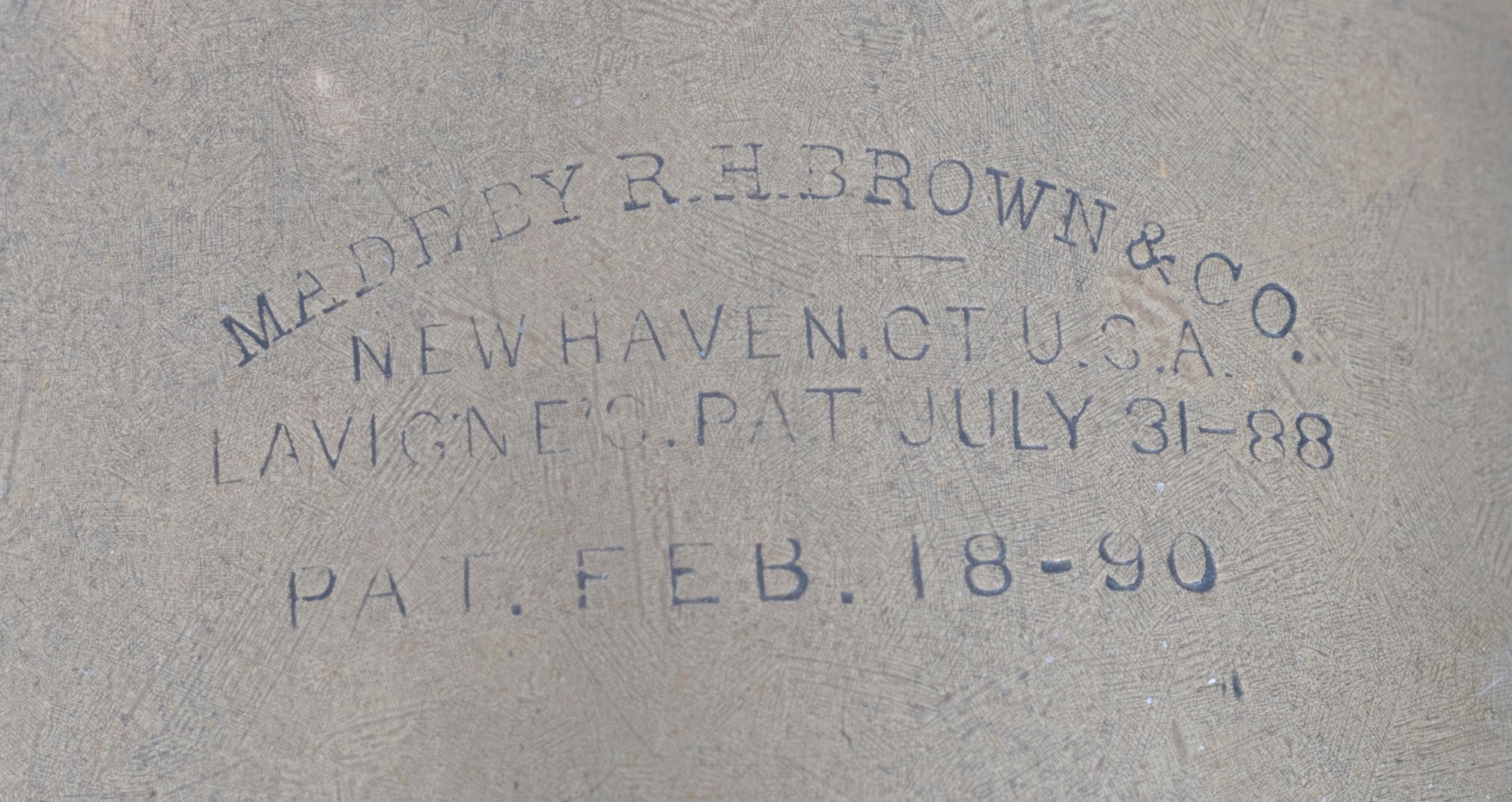 10-ga. Stamped on barrel "Made by R.H. Brown & Co., New Haven CT. , Lagine Pat. July 31 '88".