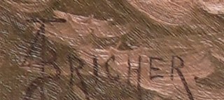 Reference: Brown, Jeffrey R., "Alfred Thompson Britcher 1837-1908", Exhibition catalog for Indianapolis Museum of Art September 12 - October 28, 1973 and George Walter Vincent Smith Art Museum November 25, 1973 - January 13, 1974. Other examples of Britchers' paintings of Grand Manan appear on pages 59, 63, 65 and 75. The painting illustrated on page 69 titled: "The Bishop-Grand Manan" has many similar characteristics to the painting described above.