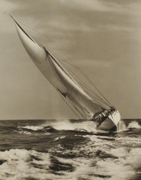 Reference: Rosenfeld, Stanley, "A Century Under Sail", Mystic Seaport, 1988, pp. 100 and 101. This image is illustrated and described on these pages. The tonal range in the photograph is deeper and has a greater range of tonality than the illustration in the book. Rosenfeld in his vintage prints personally painstakingly hand printed his own photographs. "Nina" was designed by Starling Burgess and built to sail in a transatlantic race to Spain in 1928. For decades "Nina" seemed immortal on the race circuit.
