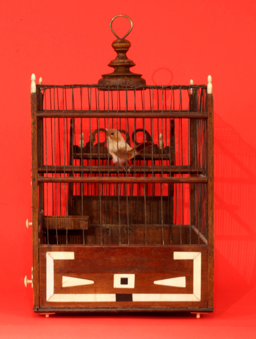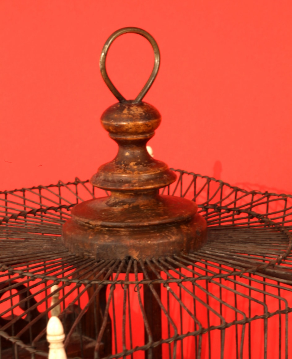 Condition: The bird cage is in excellent condition and a warm age patina. There are two collection identification numbers written in red and black on the top surface of the clean-out draw.
