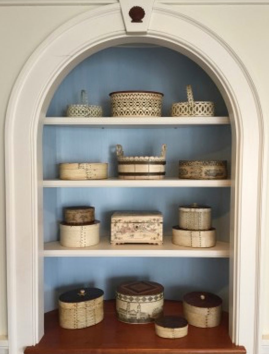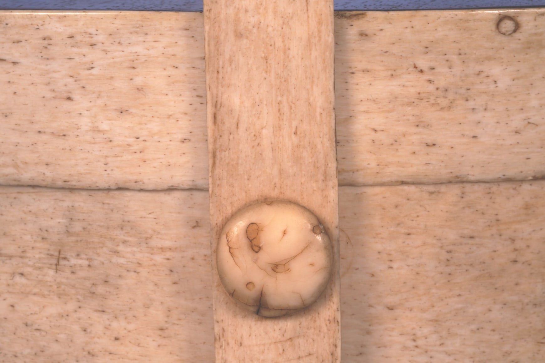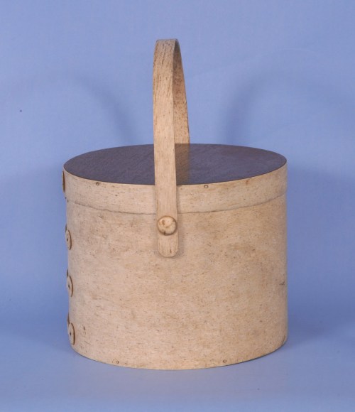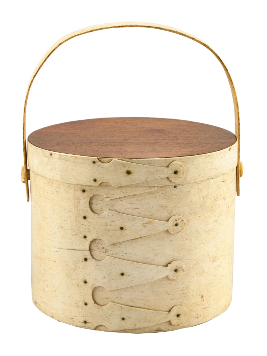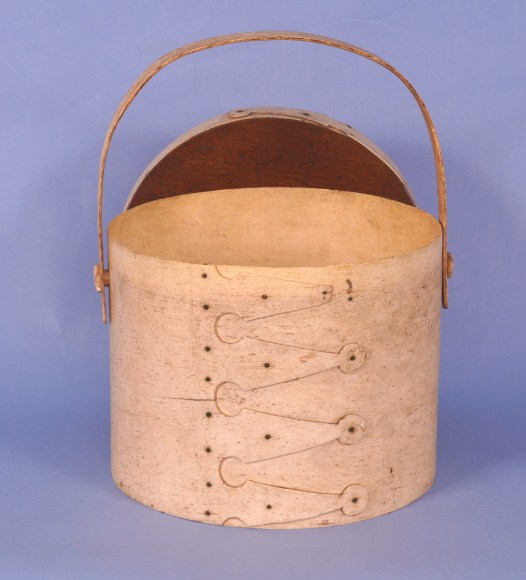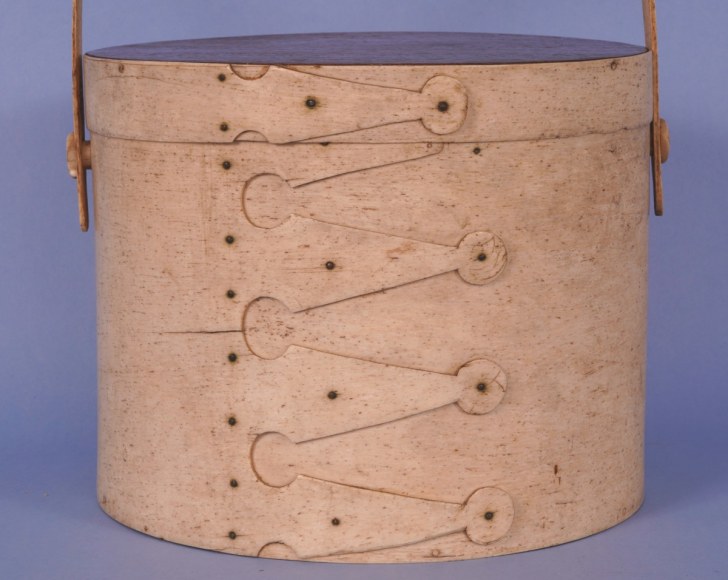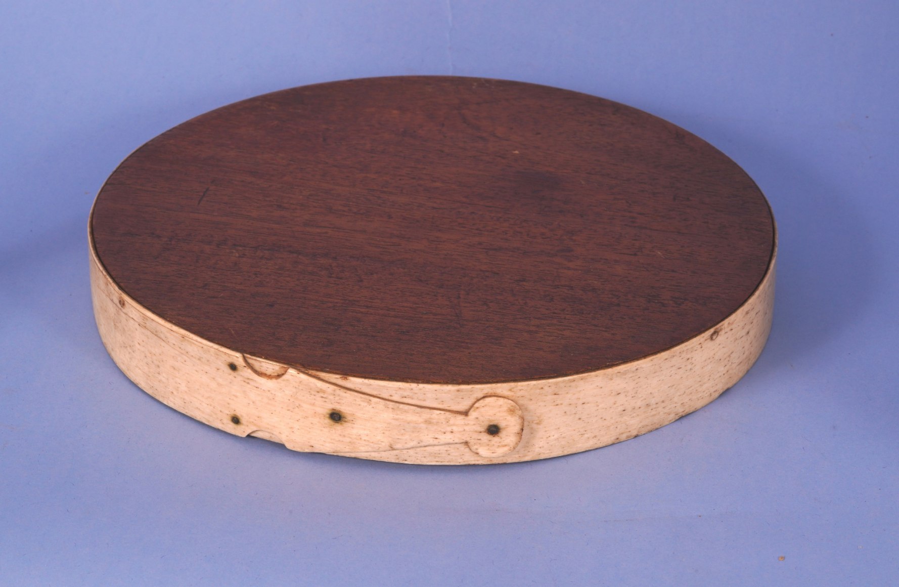 Swing Handled Covered, Rare and Large Whalebone, Whale Ivory and Mahogany Bonnet Box with "Lollipop Carved Fingers.circa 1840.