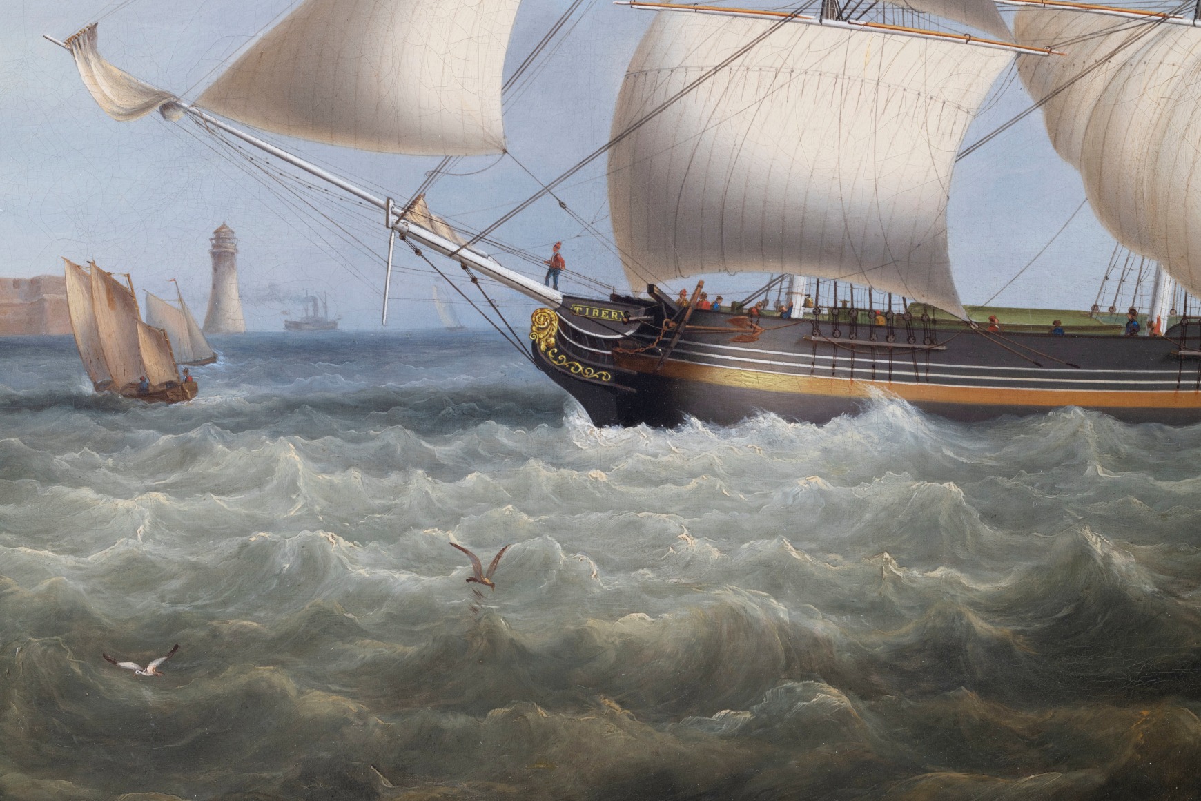 Reference: This painting is illustrated in color in the book Samuel Walters - Marine Artist Fifty Years of Sea, Sail, & Steam" by A.S. Davidson published in Great Britain by Jones-Sands Publishing 1992 Coventry page 64. Provenance: This painting hung for decades at "India House" a Maritime Museum located at 1 Hanover Square at the southern end of the New York Financial district. It still bares the plaque of the individual who gave it to the Museum.