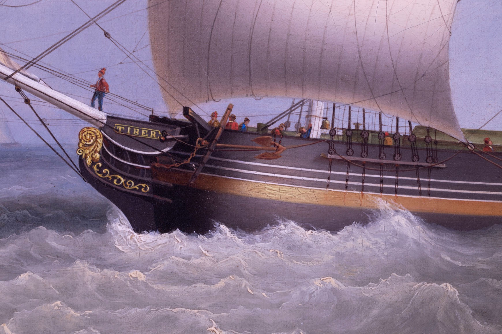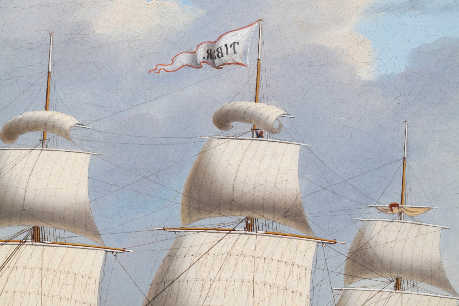 Oil on Canvas depicting the American Ship “Tiber” in two views signed and dated Walters and Son 1832.