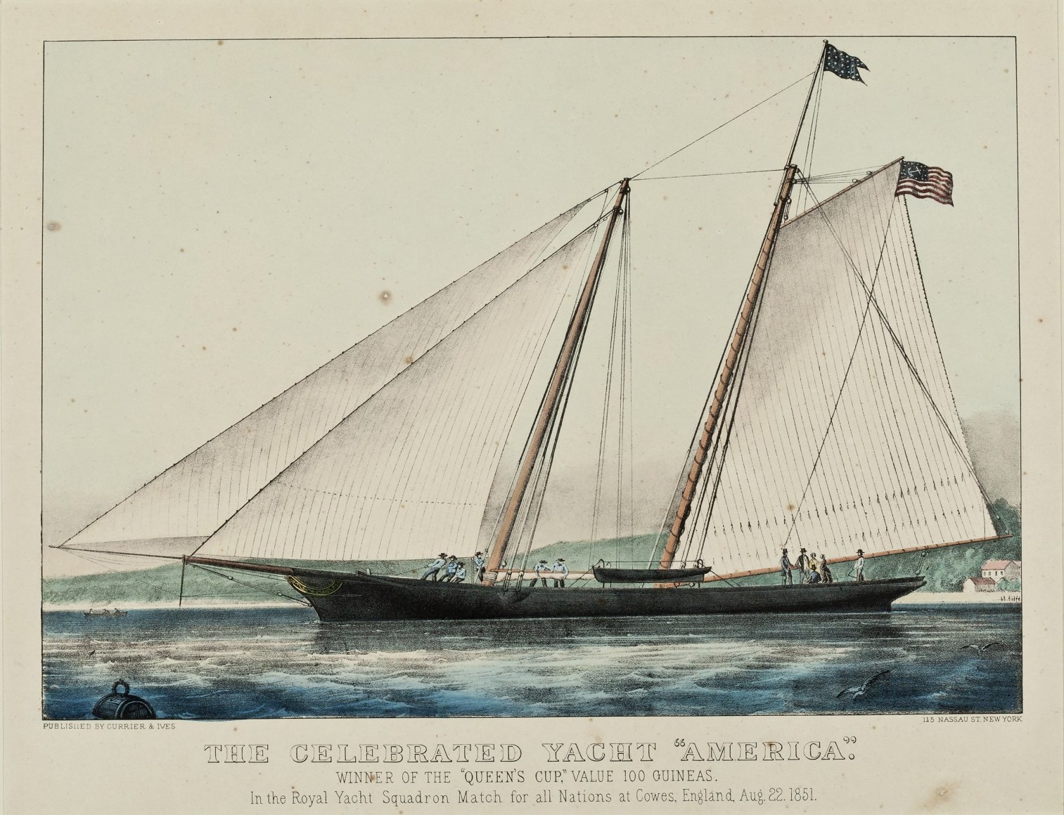 Print 3 is a hand-colored lithograph (cropped version, titled: "THE CELEBRATED YACHT "AMERICA"