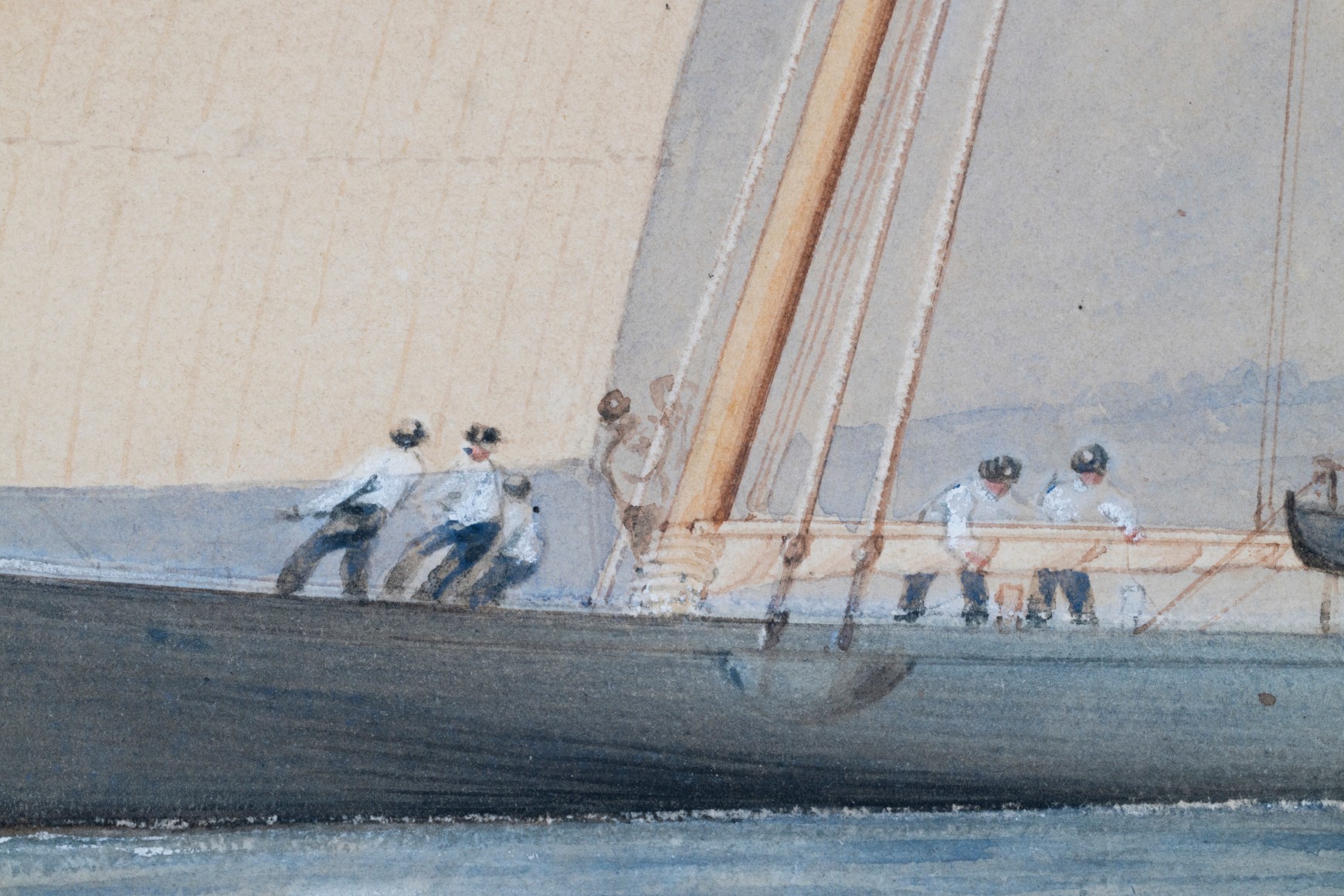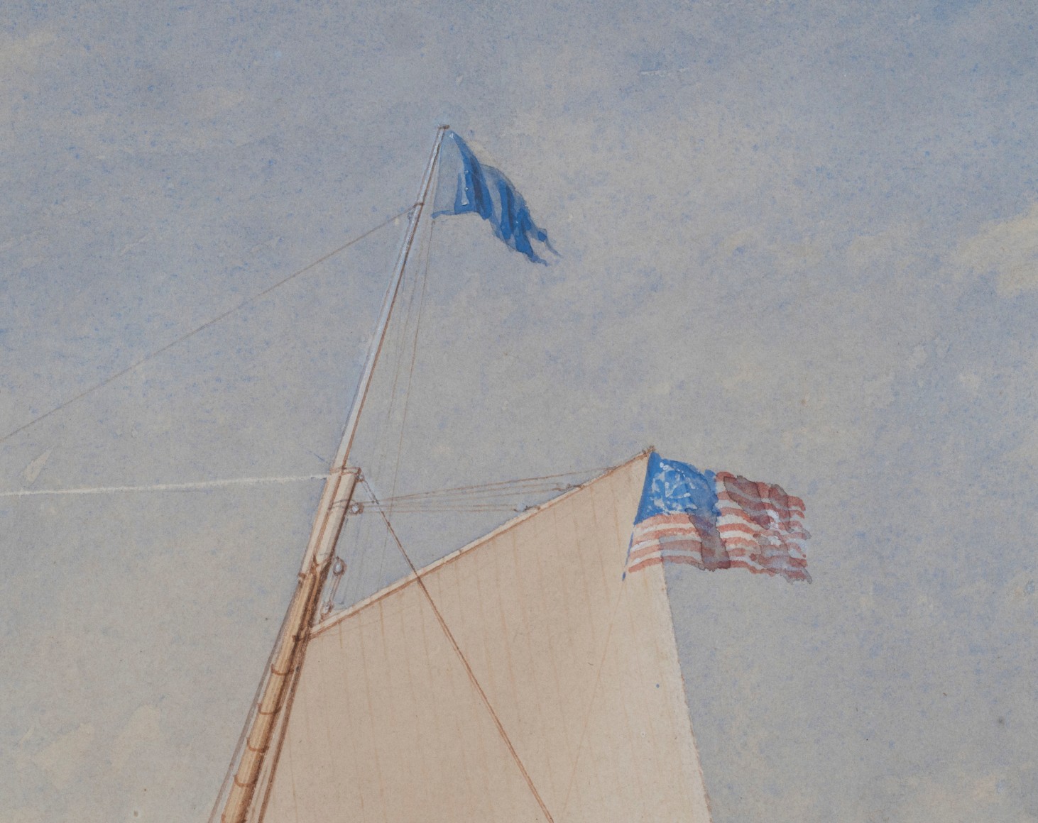 This watercolor discovery is significant for scholars and collectors to trace the origins of three outstanding prints, to learn the original artist (T S Robins) and to expand the knowledge of historical documentation for the maritime field in its understanding of the 1851 America's Cup. Print 1 clearly identifies the artist.