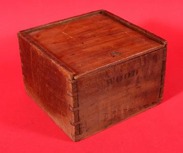 InformationMahogany boxed dry card whale boat compass, signed on the card F.W. LINCOLN 7 CO. BOSTON. MASS. The compass card is divided into eight sections with 64 degree markings around the outside perimeter. The card is set into green painted wood bowl and is set into a two-part metal gimballed ring. The ring is attached at opposite sides to the box and there is a wood wedge that was used to lock the gimbal ring when not in use. The dovetailed pine box has a sliding mahogany top. The front of the box has a black stencil with the word “WOOD." (I -918)